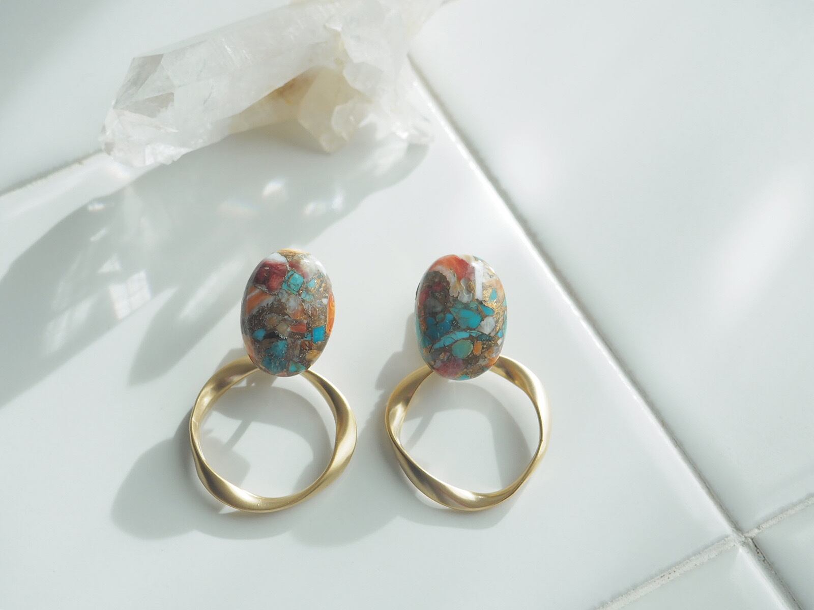 ターコイズシェルコッパーのフープ2wayイヤリング
