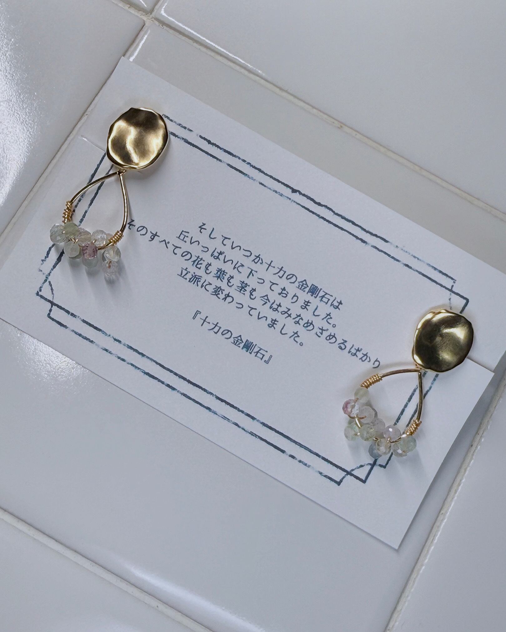 宮沢賢治作『十力の金剛石』の一節から着想を得て作製したピアス/イヤリングです。