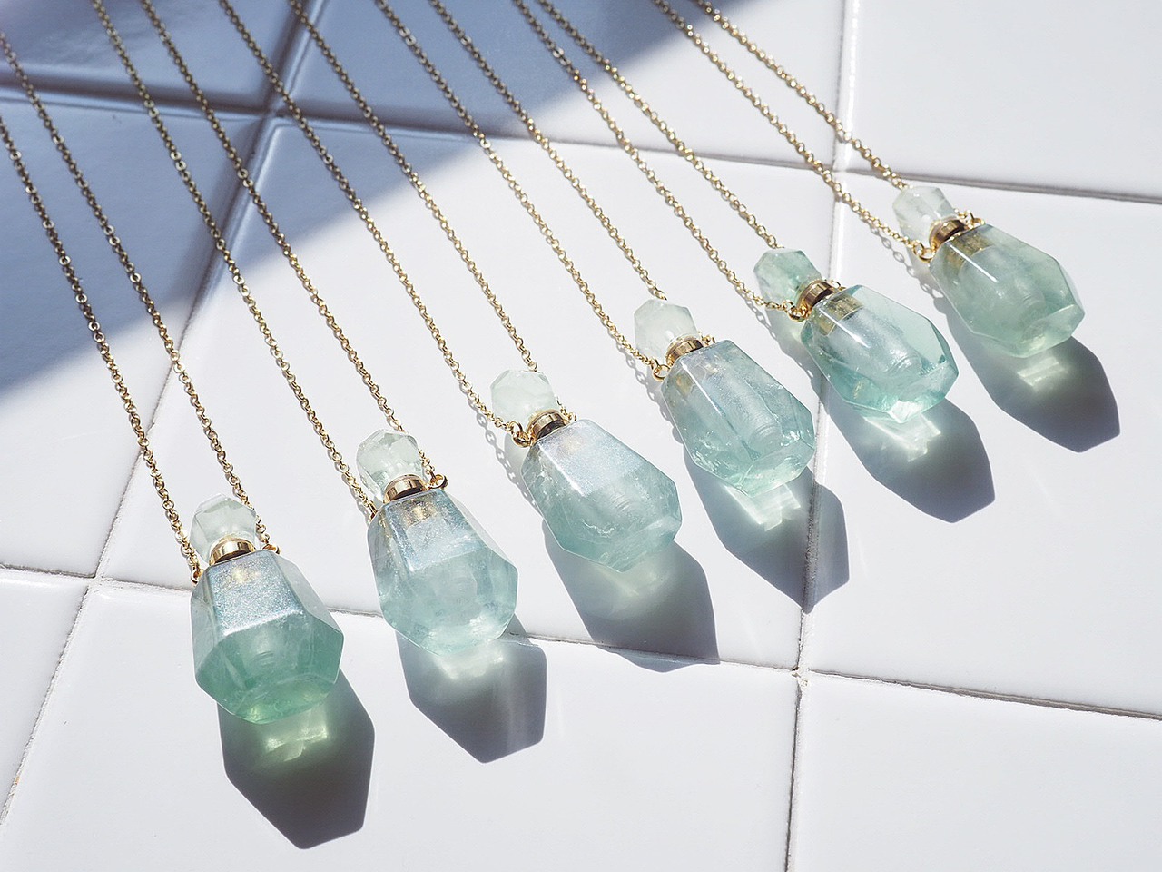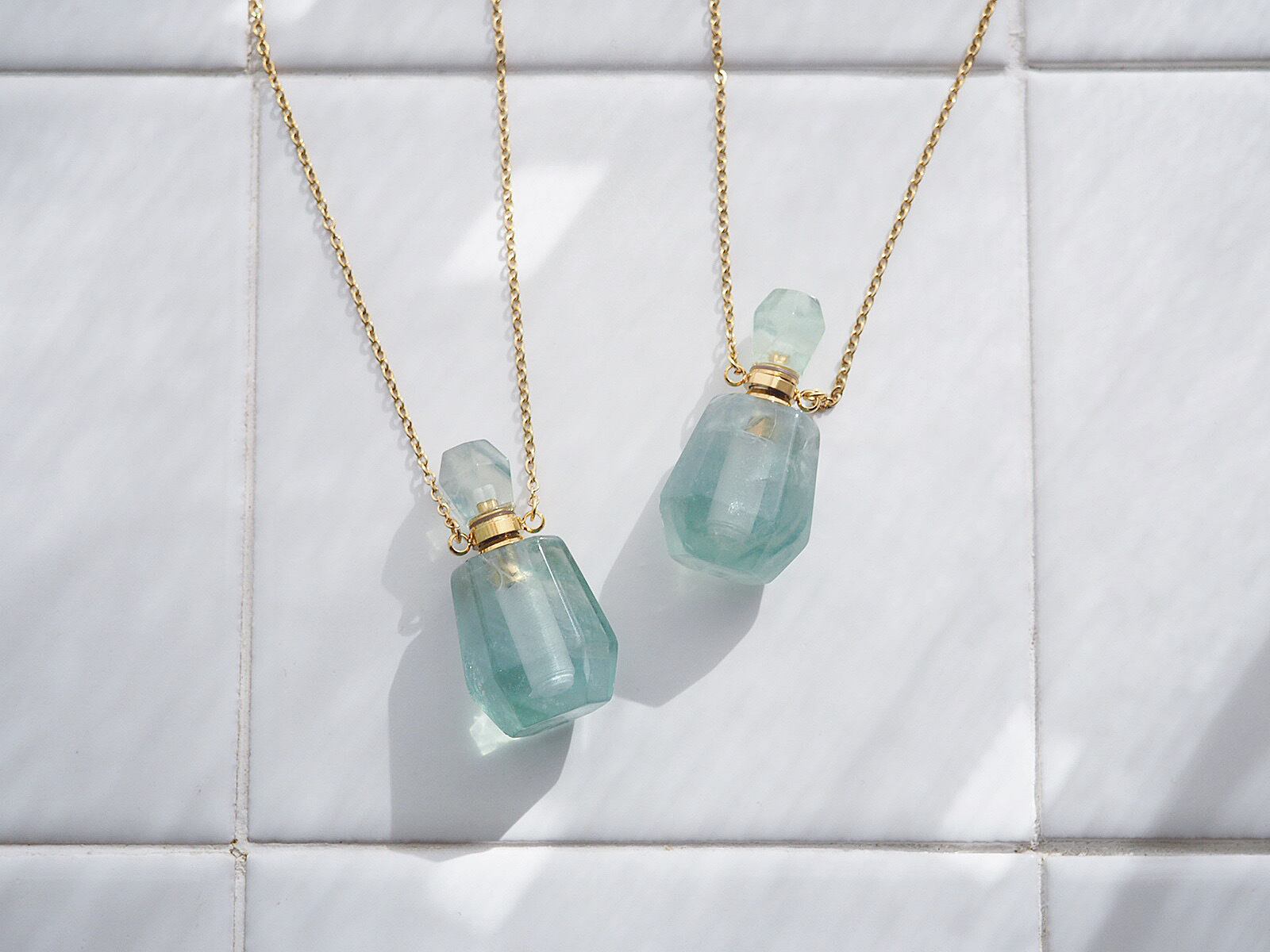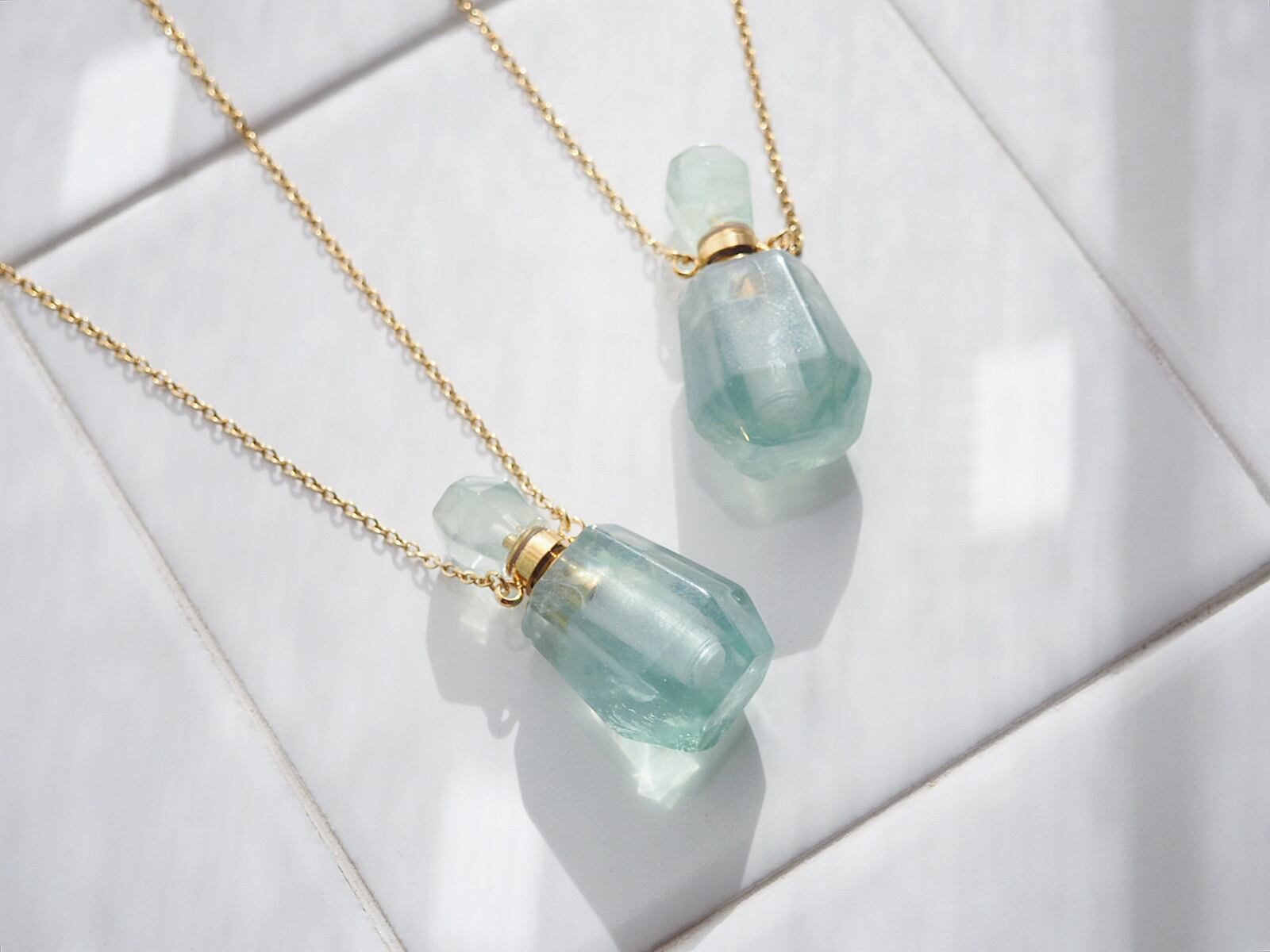 フローライトの香水瓶ネックレス