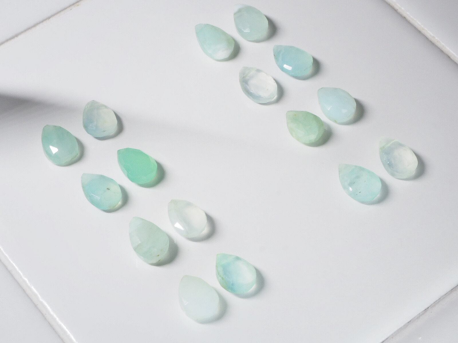 名前にブルーとありますが、こちらはぼんやりホワイトがかったものとエメラルドグリーンの海のような美しい色合いのものをペアに仕立てました。