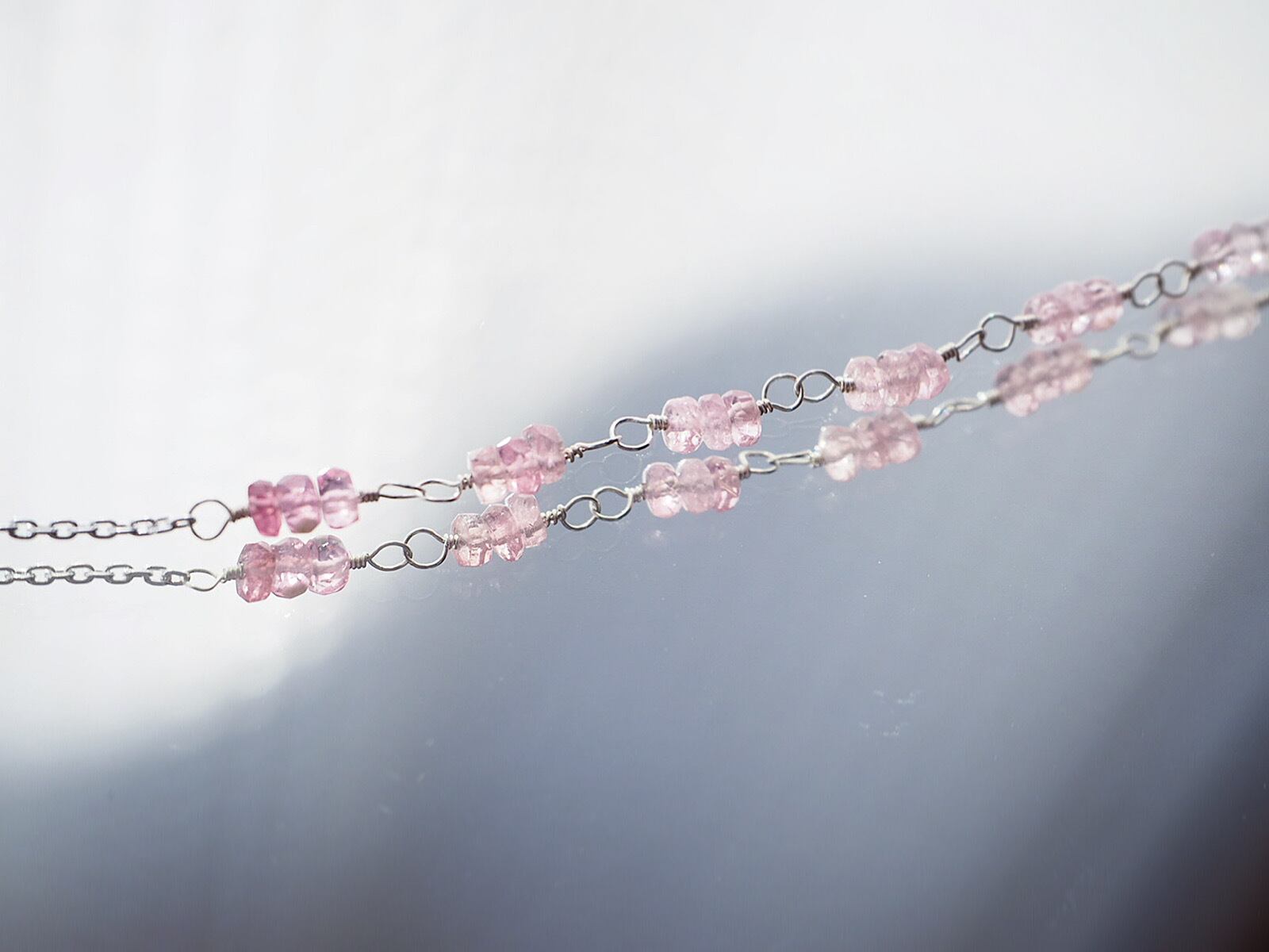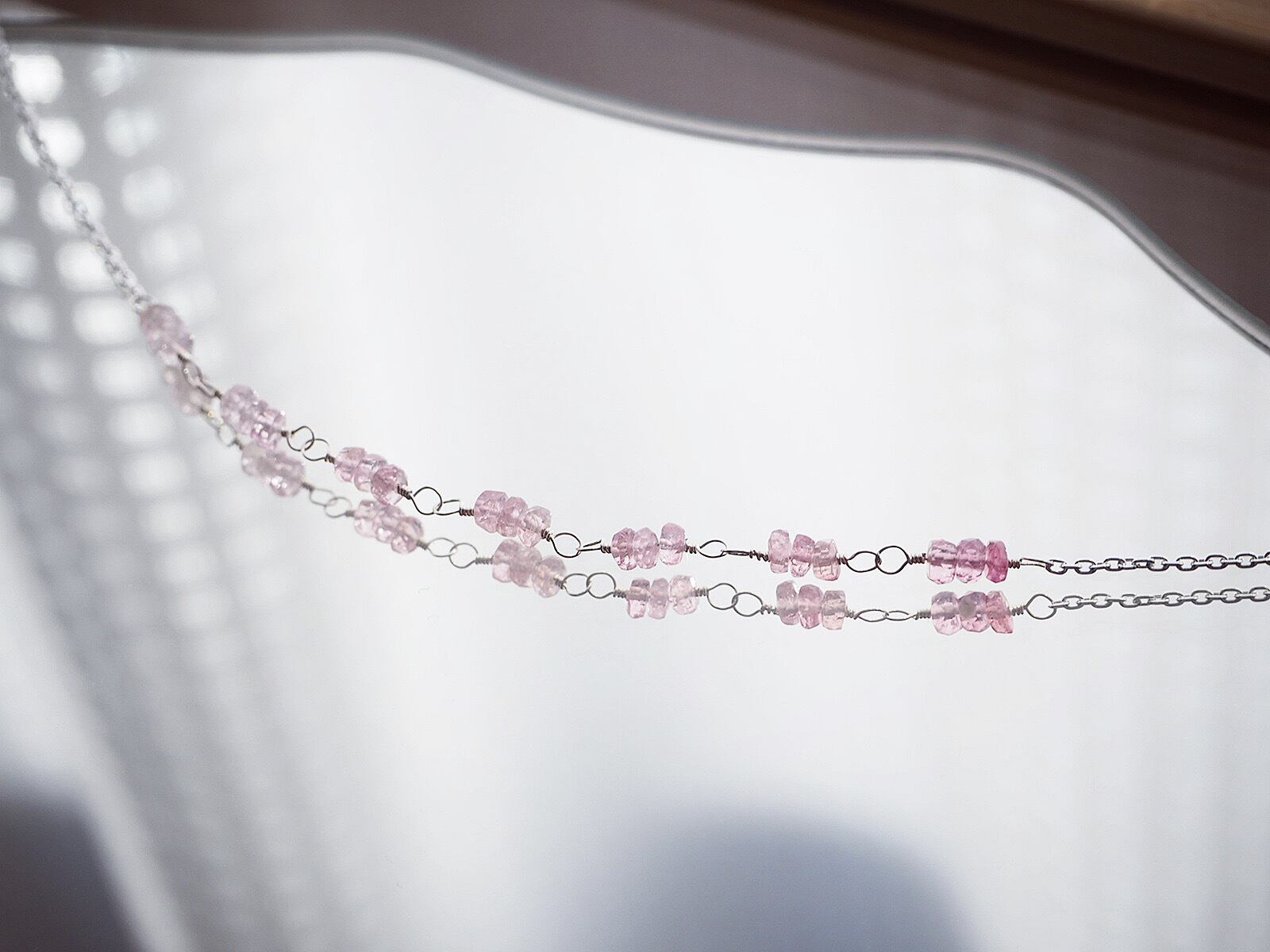 アフガニスタン産の高品質なピンクトルマリンを、うららかなグラデーションネックレスにお仕立てしました。
