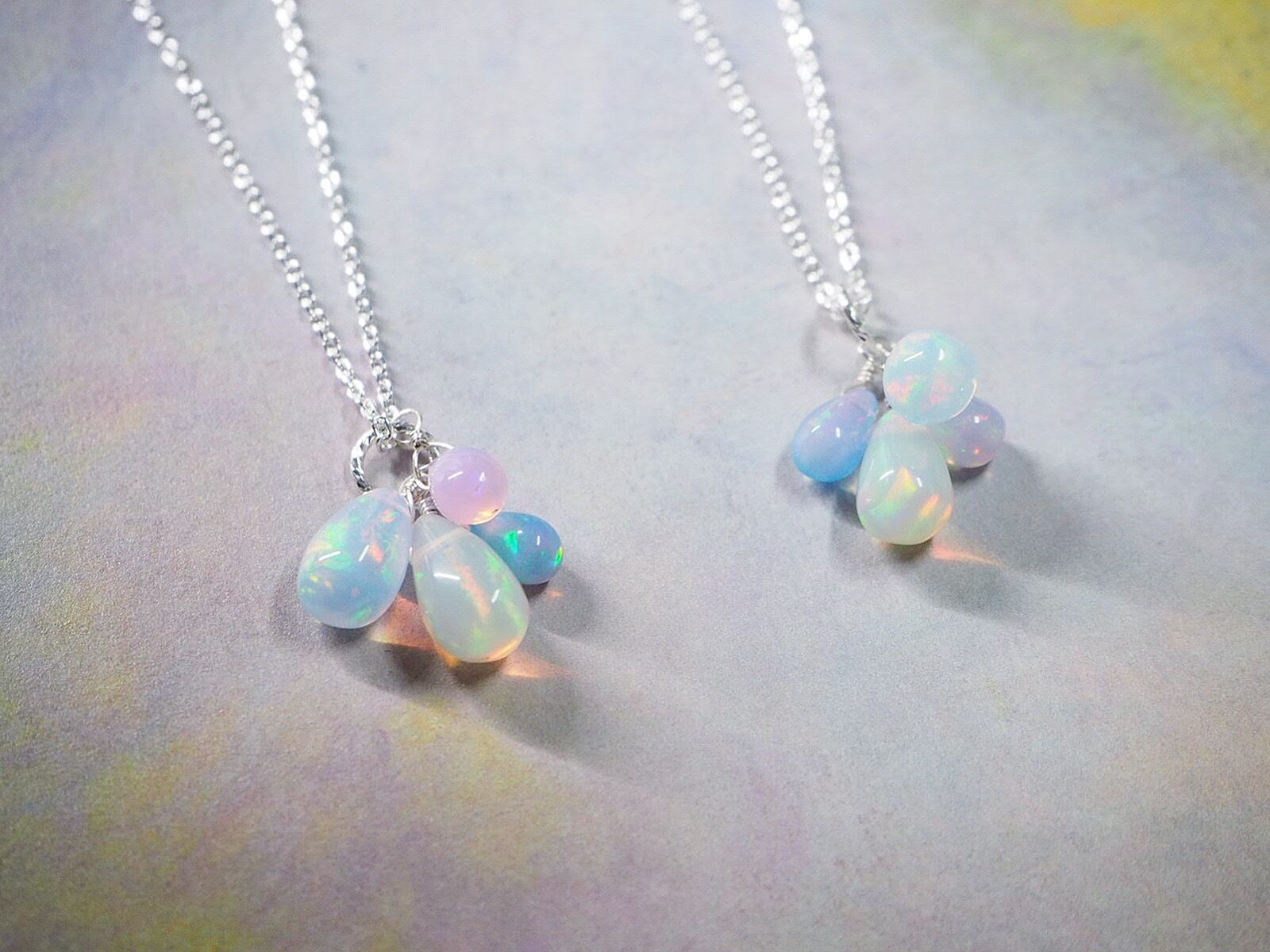 淡く染め上げた紫陽花の露のようなオパールを贅沢に8粒使用しました。