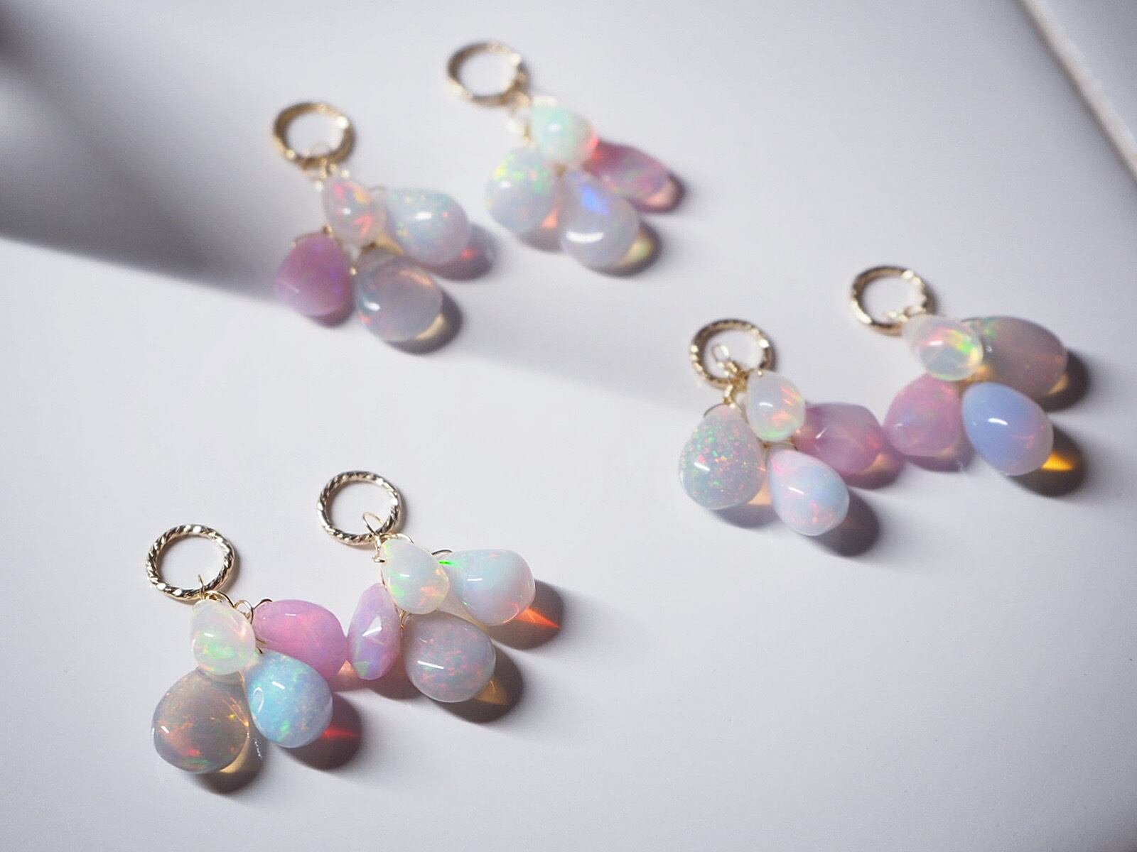 [ホワイト/ピンク/パープリッシュグレー/ライトブルー]オパールのピアス/イヤリング