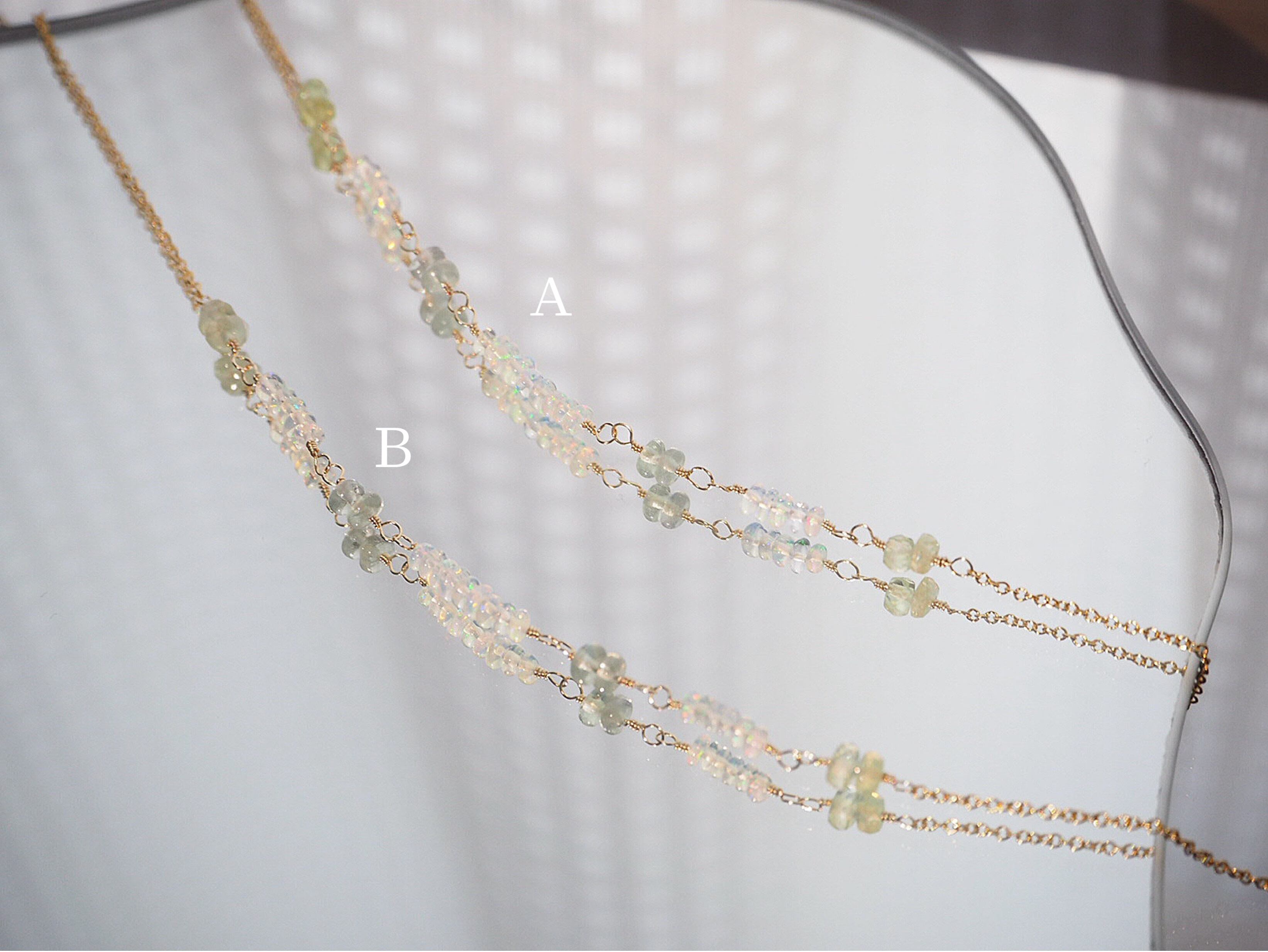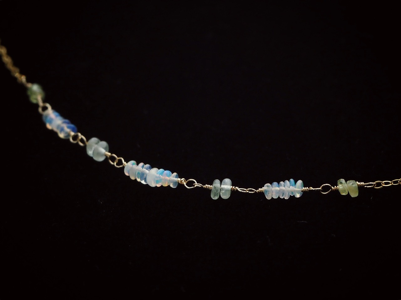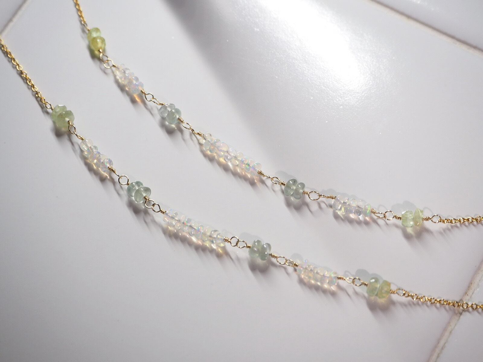クリソベリルキャッツアイ[シャルトルーズイエロー・アップルグリーン] ×オパールの14kgfネックレス