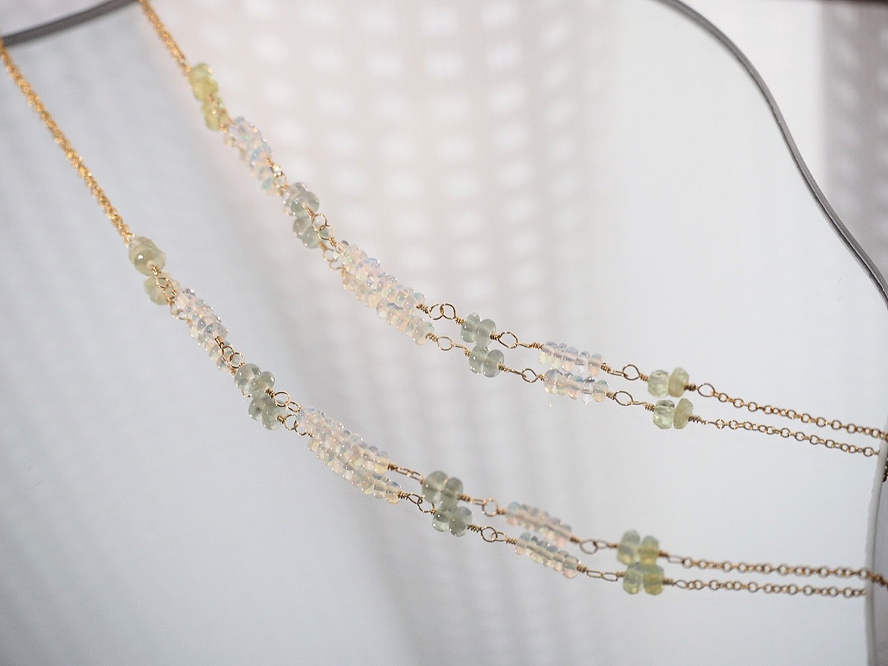 優しい乳白色のエチオピアンオパールを間に繋ぎ、上品な雰囲気にお仕立ていたしました。