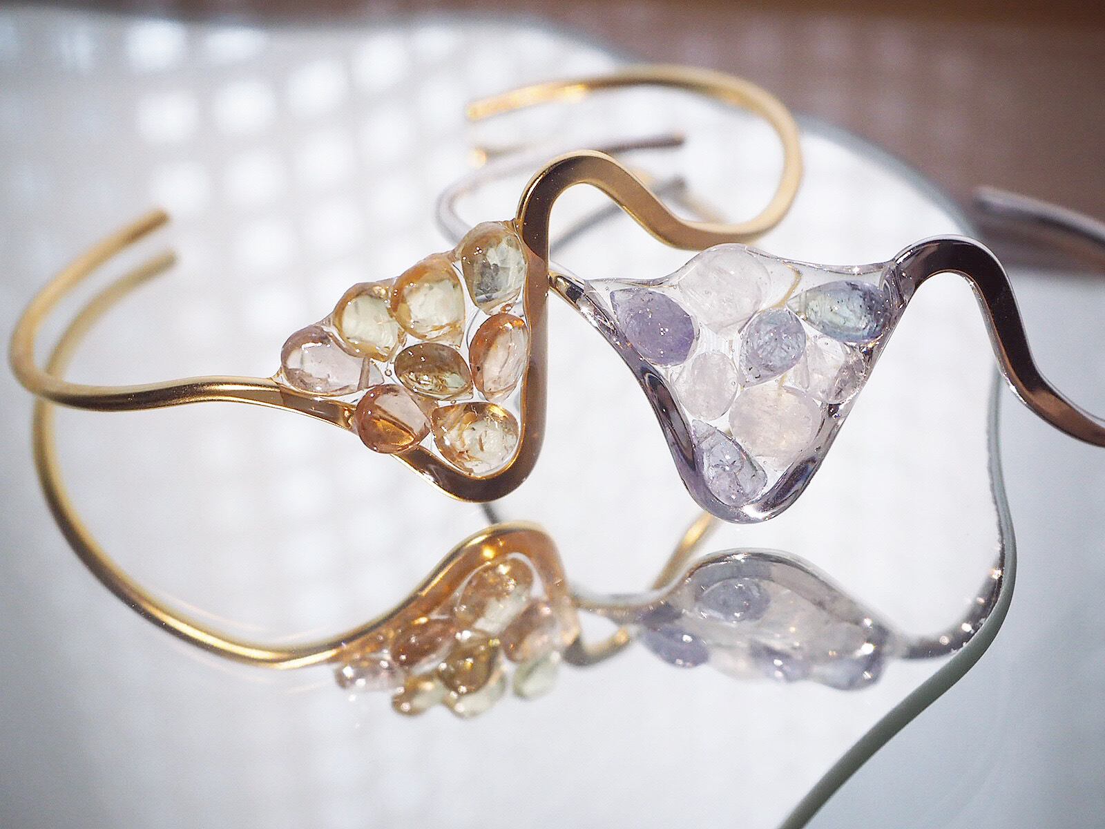 波打つフレームに鉱物を瑞々しく閉じ込めました。
