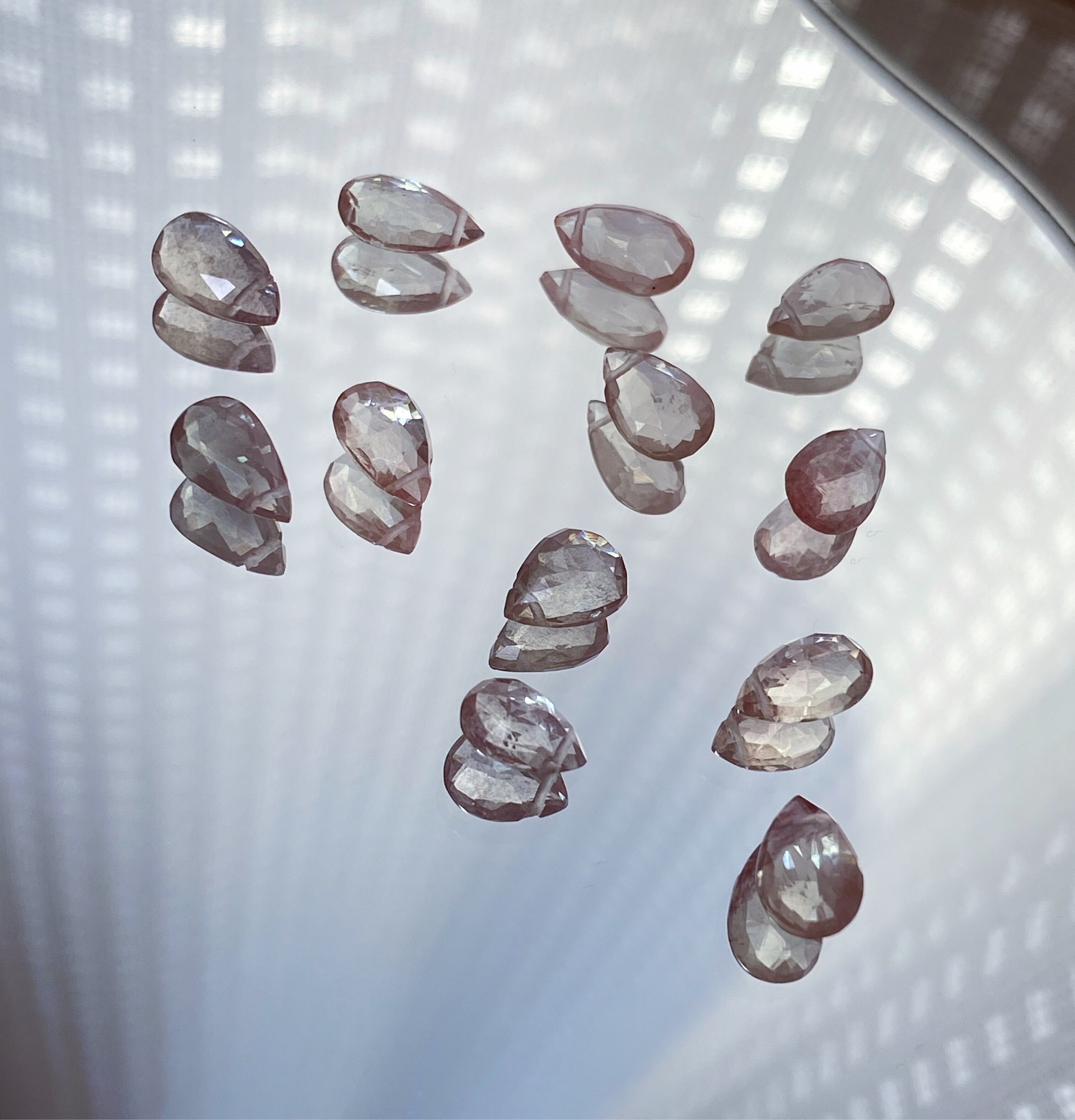 燻んだピンクに、淡くブルーグリーンがかった不思議なお色味です。