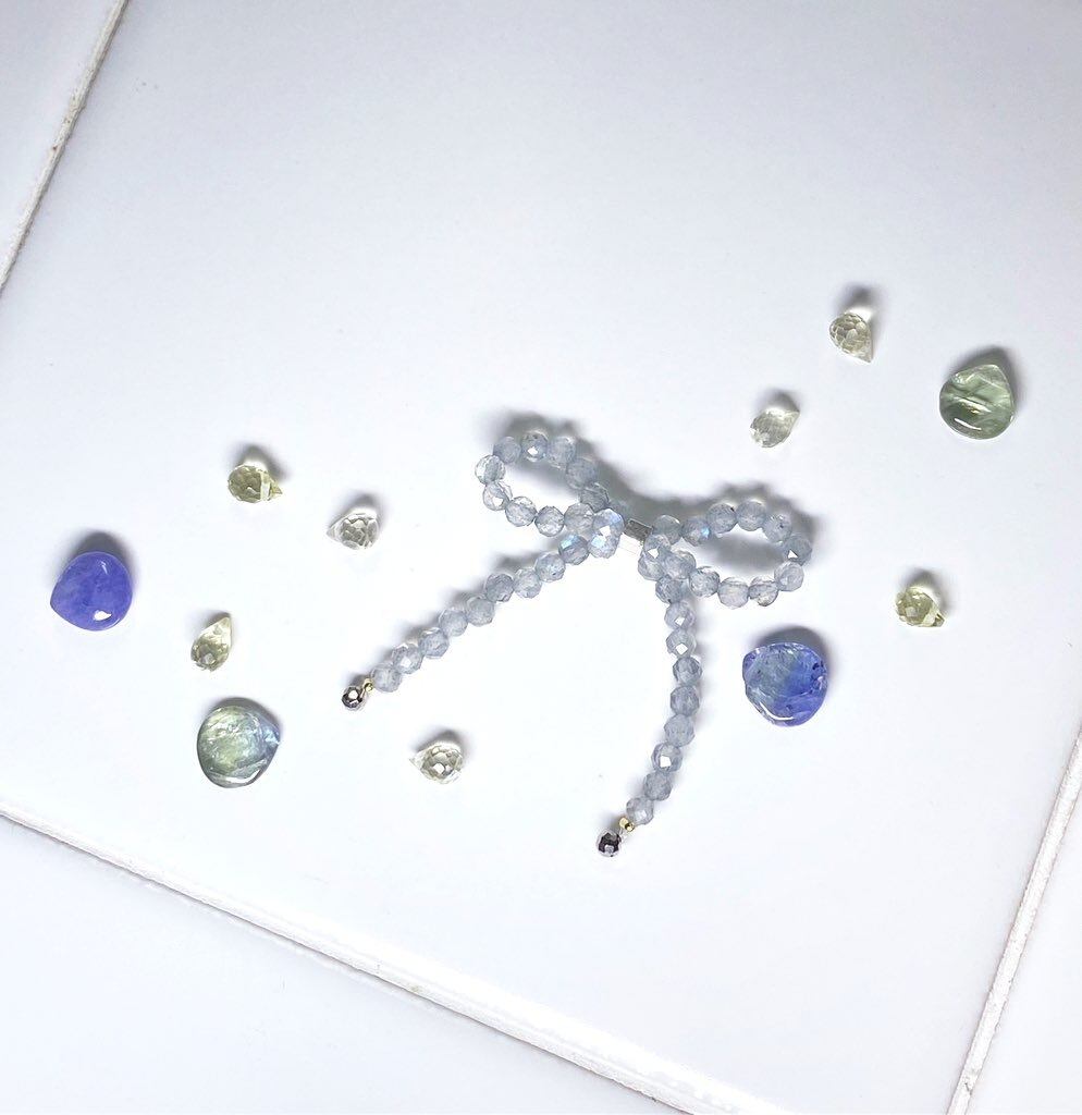 甘すぎないカラーで天然石のリボンをお仕立てしました。