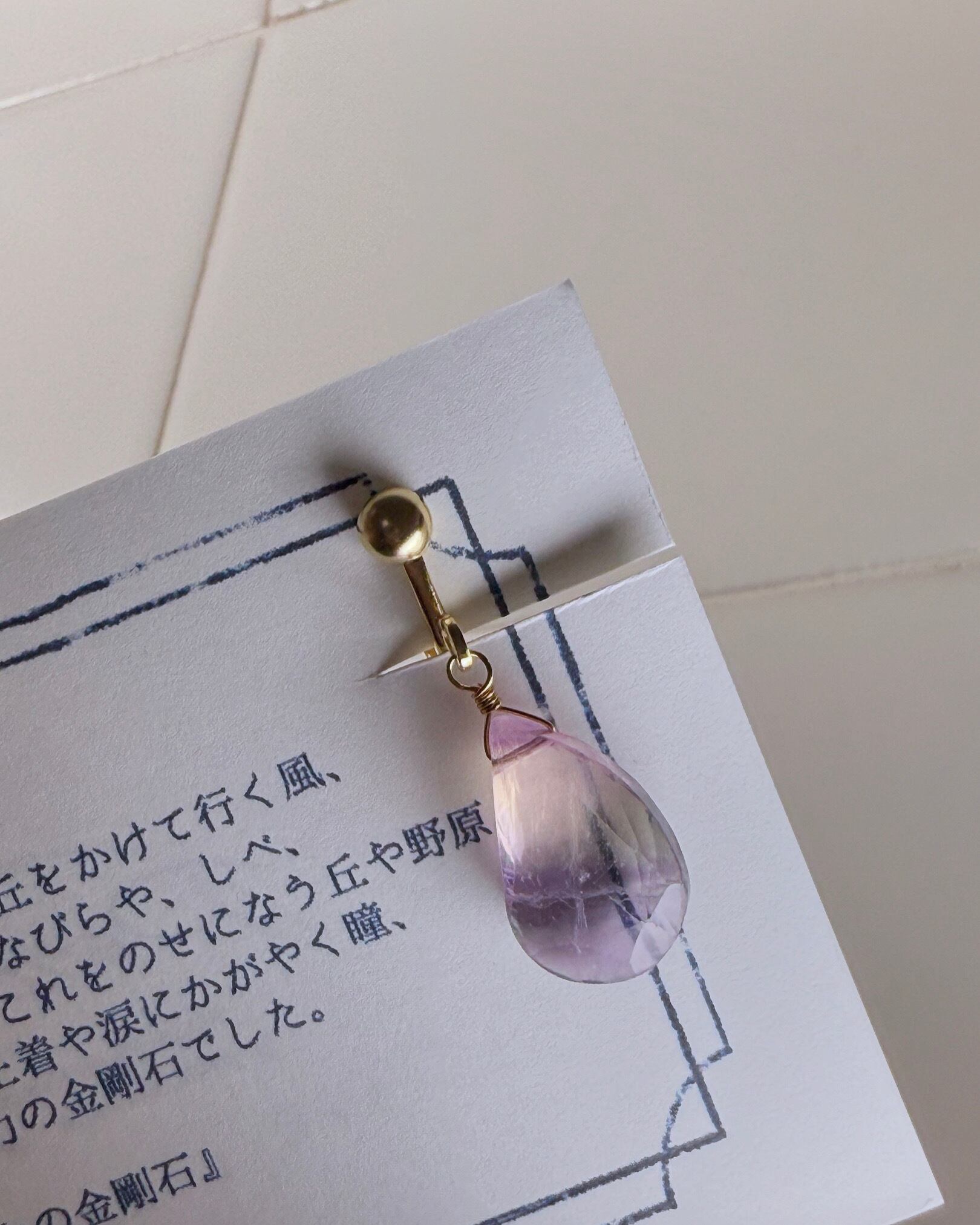 紫陽花からこぼれた瑞々しい花びらのようにも見える奥行きのあるバイカラーフローライトです。
