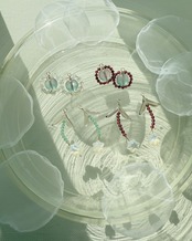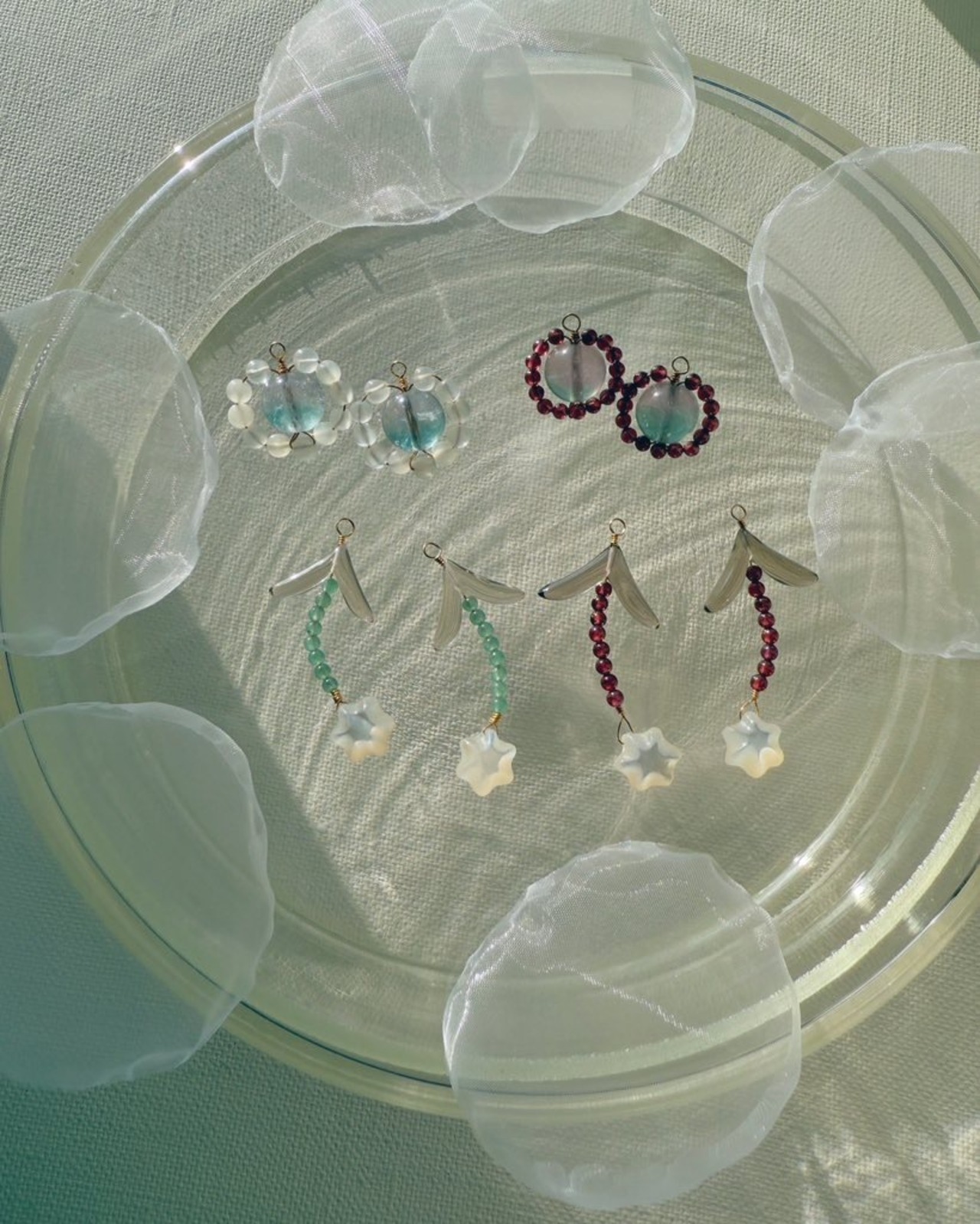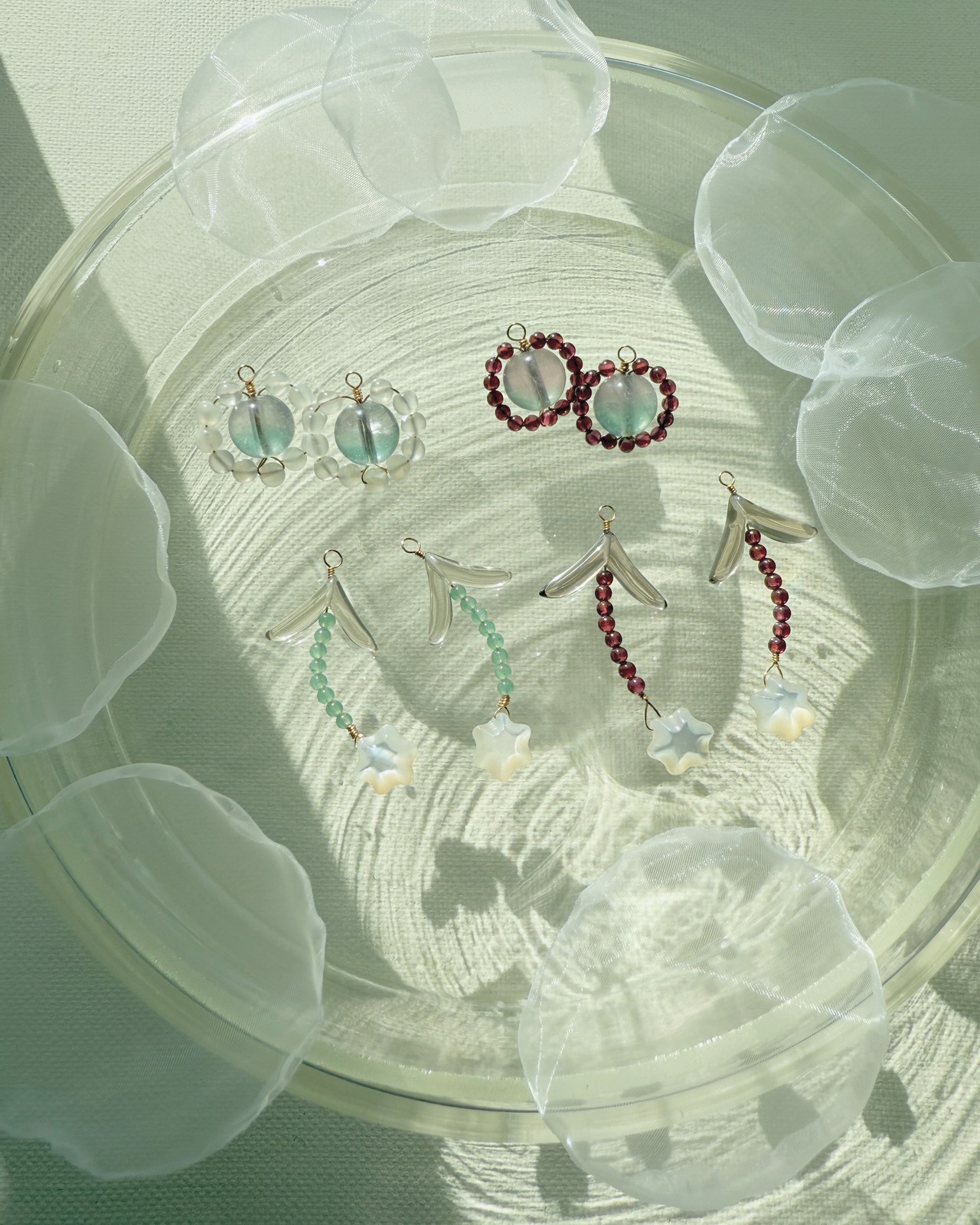 春の風よりやわらかな、まるをえがいた十力の金剛石が燐光を抱いて花々のもとへくだり、その全てを吸収する植物の美しさをイメージして作りました。